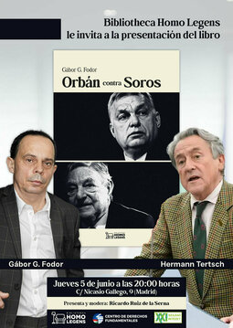 El próximo jueves 5 de junio a las 20:00 horas, el Centro de Derechos Fundamentales y la editorial Homo Legens presentan el libro Orbán contra Soros donde intervendrán Hermann Tertsch, eurodiputado, y Gábor G. Fodor, autor de la obra. La presentación y moderación correrán a cargo de Ricardo Ruiz de la Serna, jefe de Estudios y Formación de la Fundación Disenso.